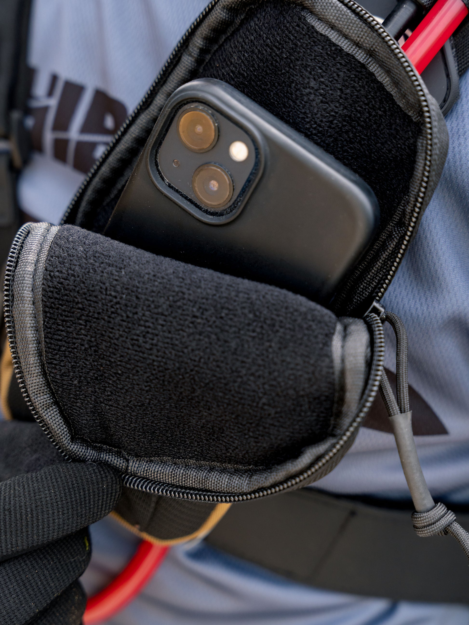 Transporta o teu telemóvel com segurança, conforto e sempre à mão. Esta bolsa foi desenvolvida para ser fixada diretamente nas alças das mochilas de hidratação, oferecendo uma solução prática e segura durante a atividade.