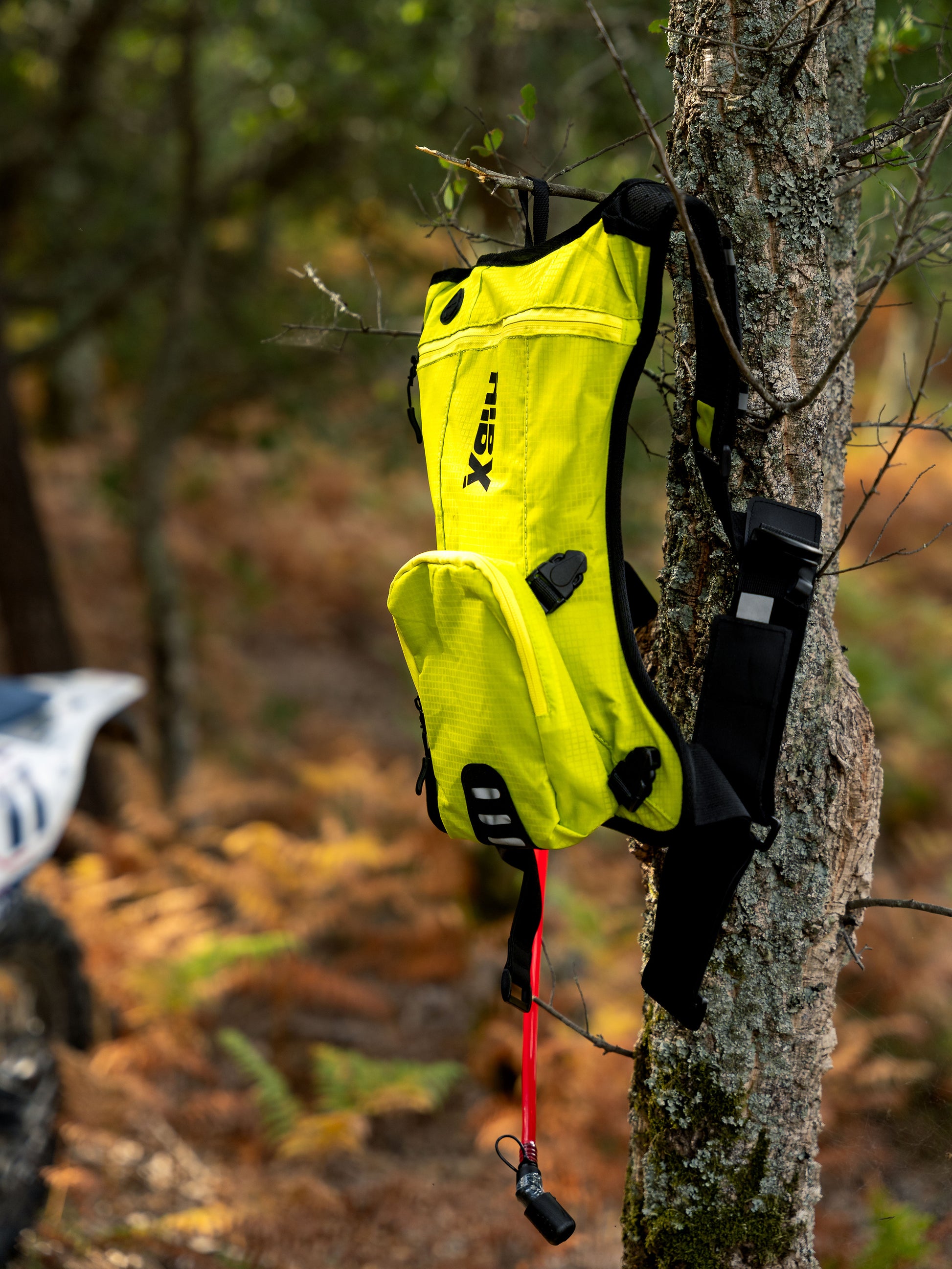 - Reservatório incluído: Bolsa de hidratação de 2L em TPU alimentar, com tubo em silicone de alta flexibilidade e válvula de mordida com fecho automático.