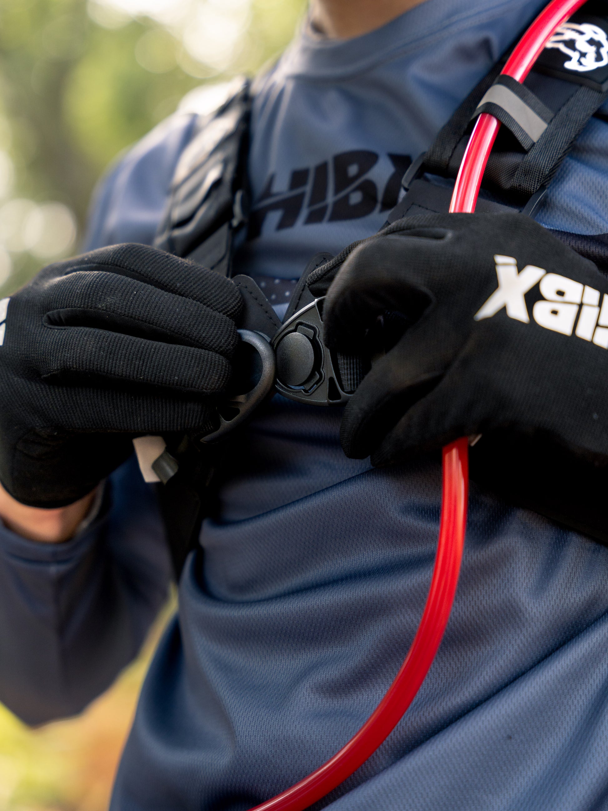- Reservatório incluído: Bolsa de hidratação de 2L em TPU alimentar, com tubo em silicone de alta flexibilidade e válvula de mordida com fecho automático.